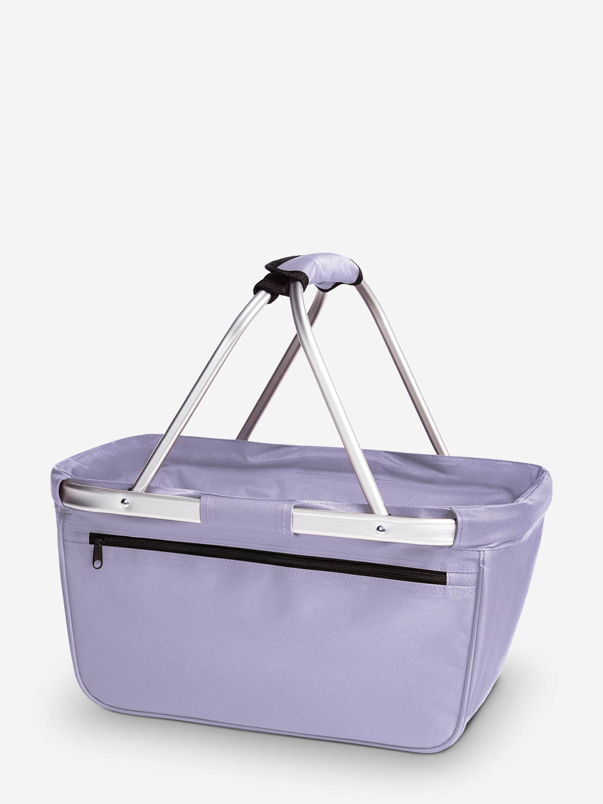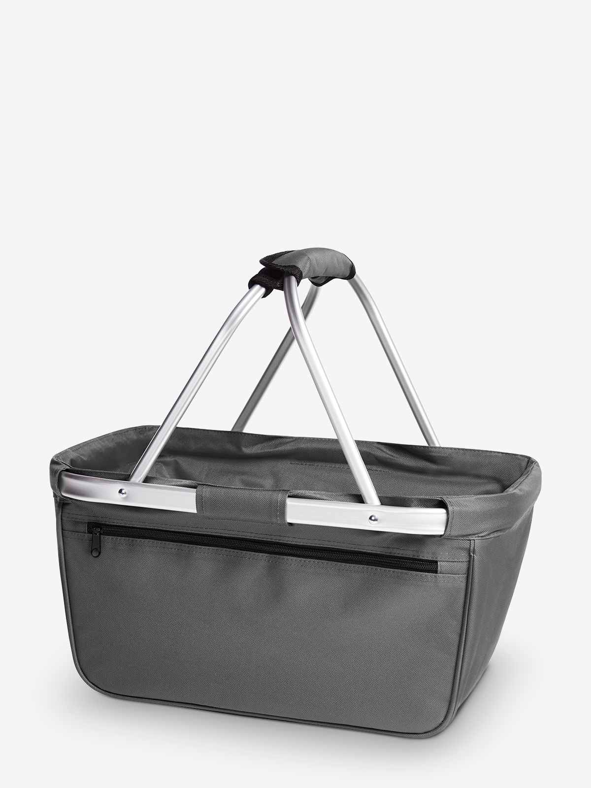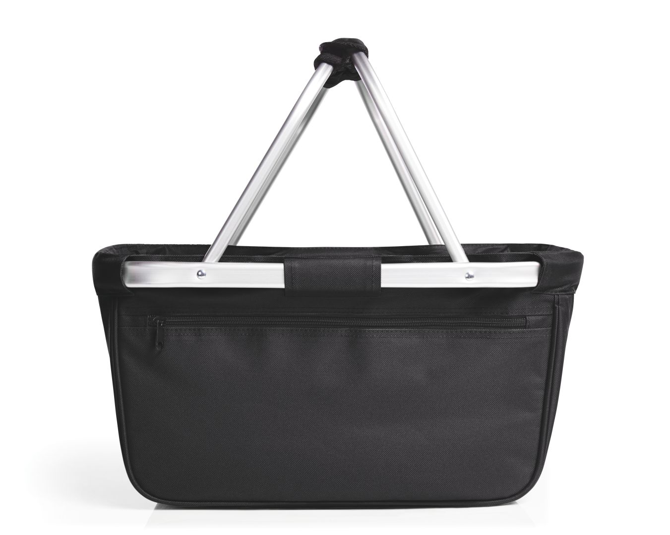 formschöner Einkaufskorb mit Alurahmen und Reißverschluss-Vortasche; faltbar