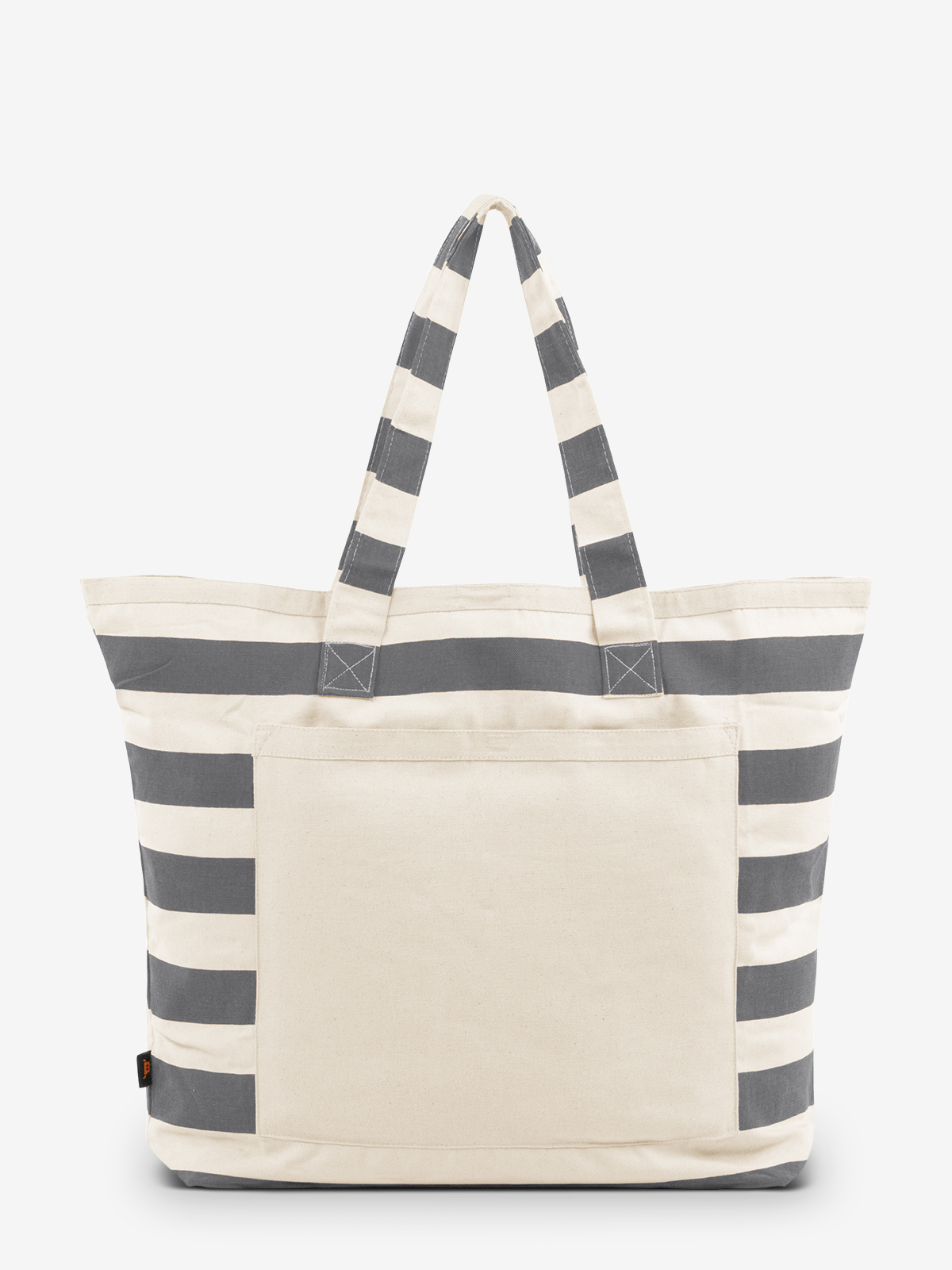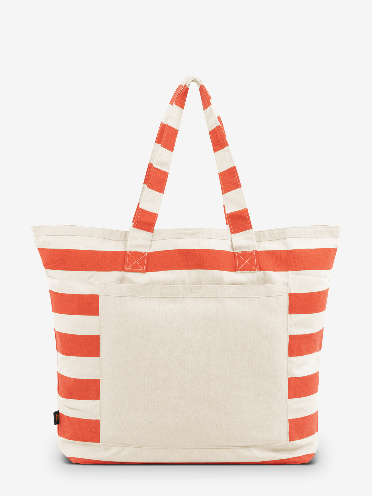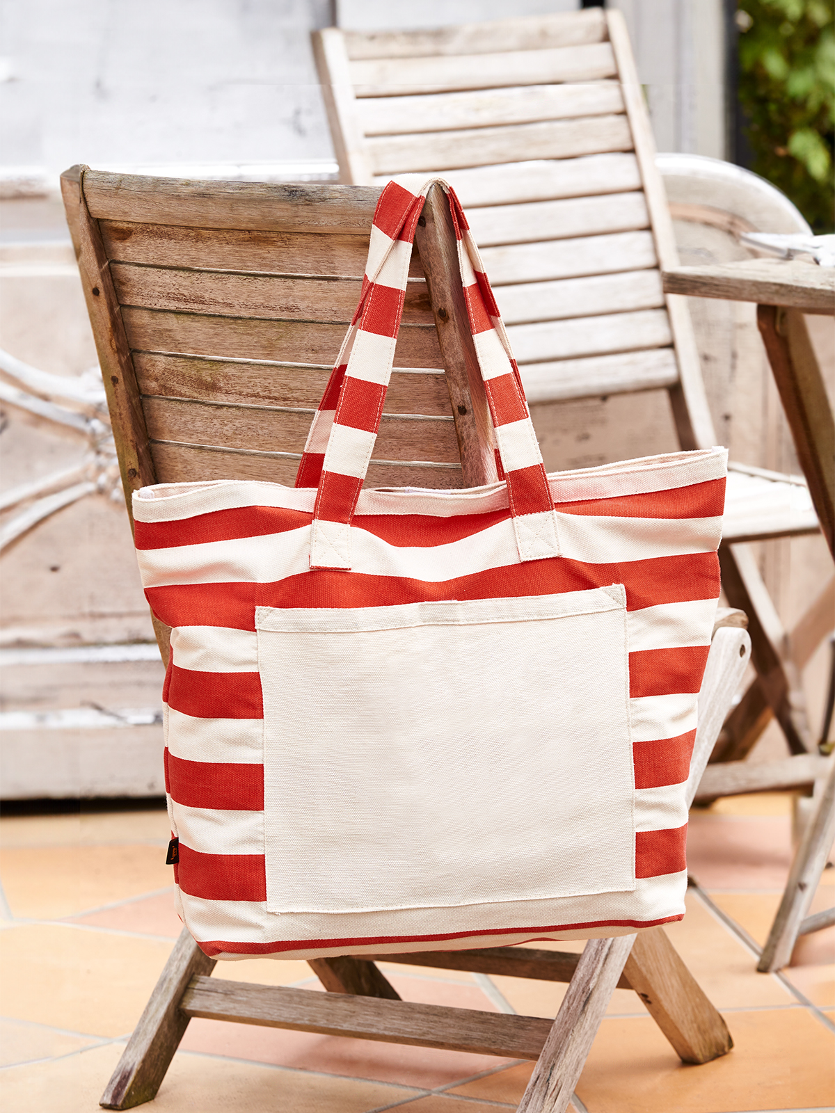 sehr großer Baumwoll-Shopper schwerer Qualität; großzügiger Schnitt mit großer Vortasche; Klettverschluss; frisches Blockstreifen-Dekor