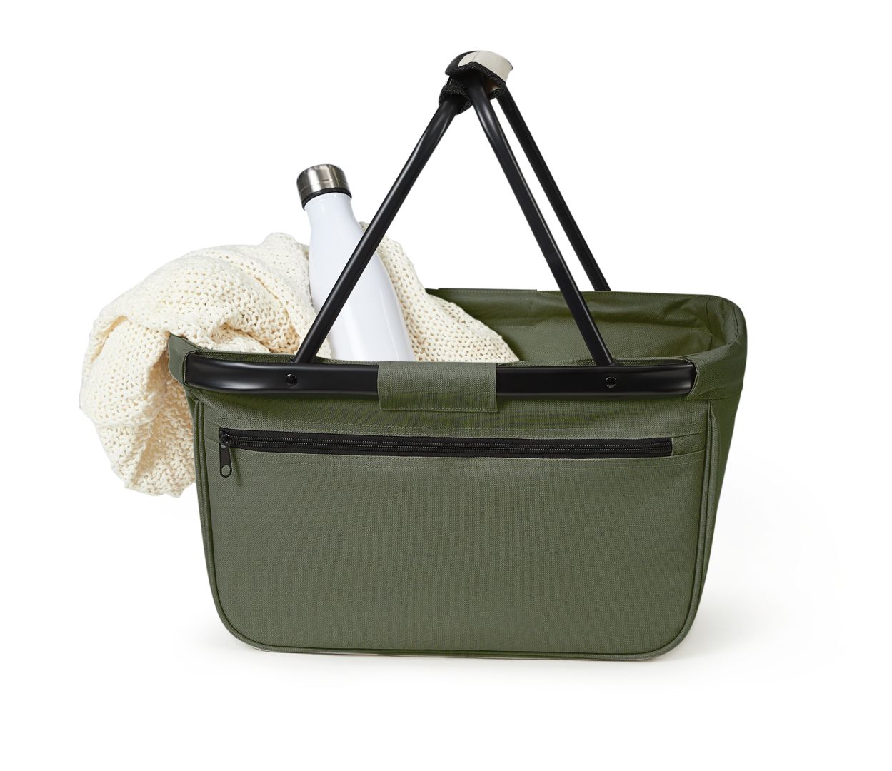 formschöner Einkaufskorb mit Alurahmen und Reißverschluss-Vortasche; faltbar