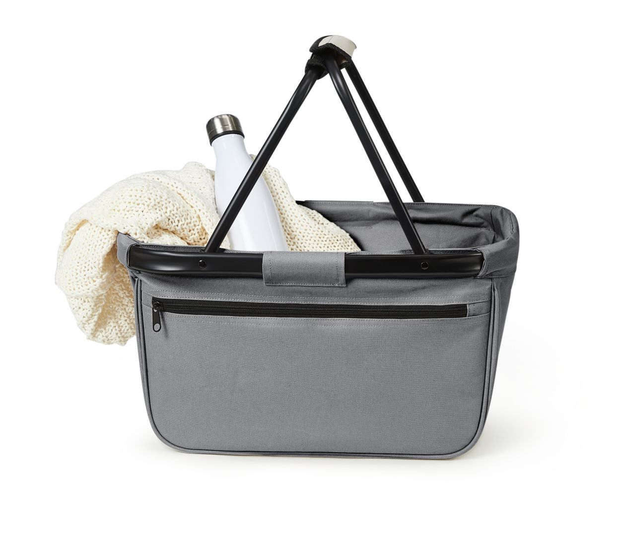 formschöner Einkaufskorb mit Alurahmen und Reißverschluss-Vortasche; faltbar