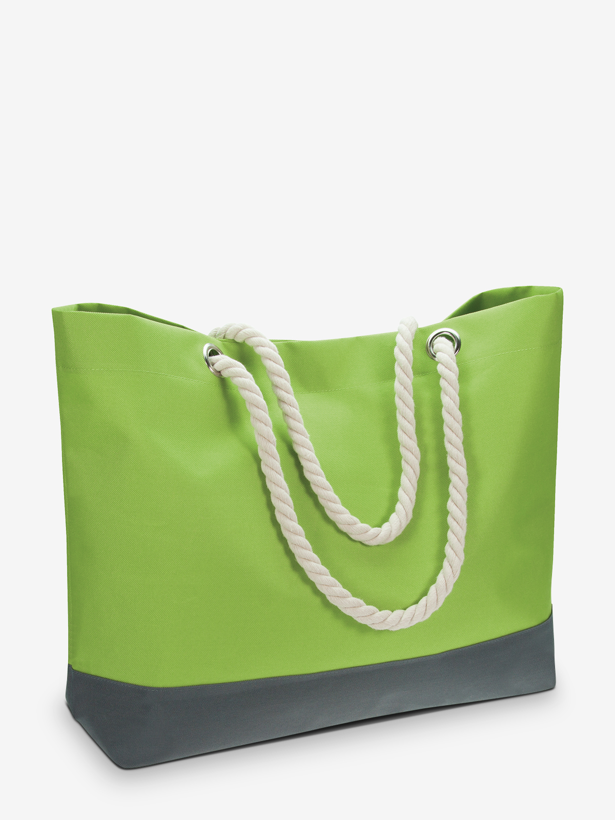 formschöner, großer Shopper mit dekorativen Ösen und Griffen aus dicker Baumwollkordel; Hauptfach mit hängendem Reißverschluss-Organizer