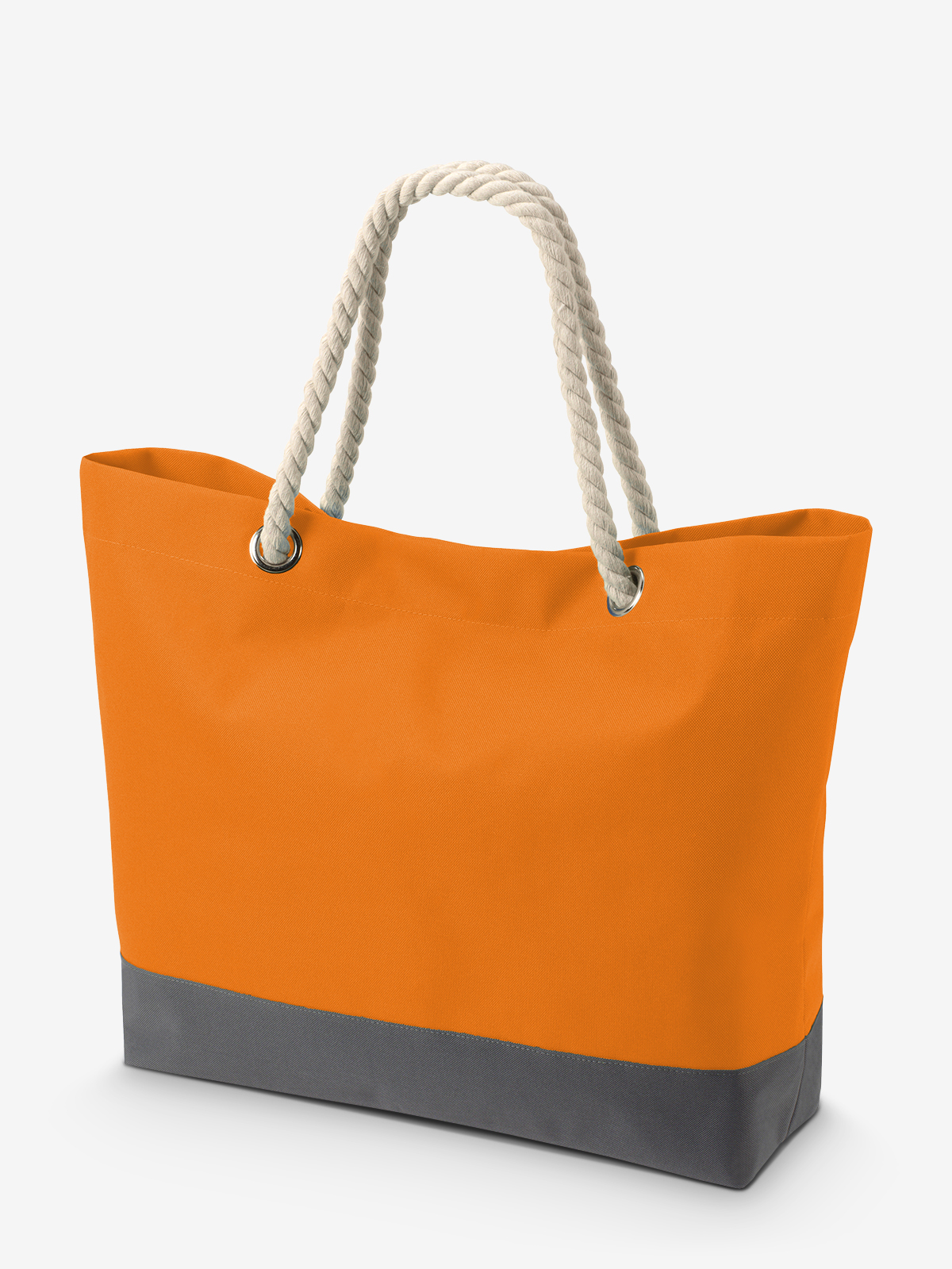 formschöner, großer Shopper mit dekorativen Ösen und Griffen aus dicker Baumwollkordel; Hauptfach mit hängendem Reißverschluss-Organizer