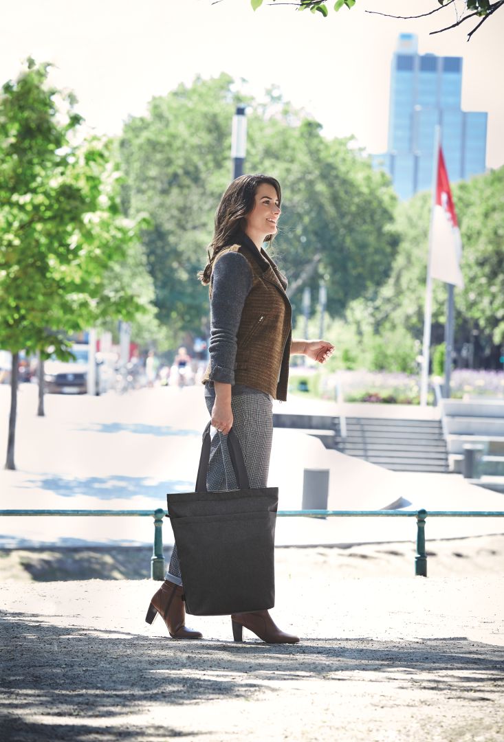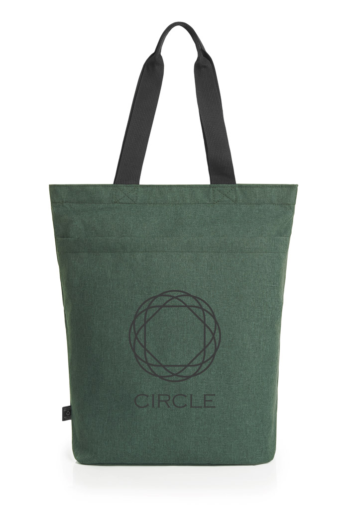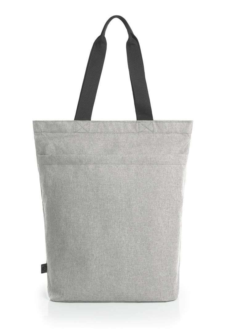 urbaner Shopper mit Reißverschluss-Hauptfach; rPET-Obermaterial; gepolsterter Boden; Reißverschluss-Vortasche; zwei Tragegriffe