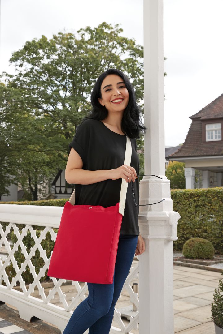 Die Bauteile des Shoppers LIKE sind schnell aufgezählt: Baumwollkorpus, Schultergurt, Druckknopf zum Verschließen. Gerade diese Einfachheit macht die Baumwolltasche aus und sorgt für ganz besondere Qualitäten. Zum einen natürlich für ihr klitzekleines Eigengewicht – das prädestiniert sie als Messetasche. Auch ihr Format scheint maßgeschneidert für Broschüren und Kataloge oder eben für den kleinen Einkauf zwischendurch. Zum anderen begeistert der Shopper durch den breiten, angenehm zu tragenden Schultergurt in Natur, der über eine Metallschnalle verstellbar ist. Überhaupt: die Metallaccessoires! Sie sorgen bei der ansonsten so zurückhaltenden (und kostengünstigen) Tasche für ein echtes Qualitätsstatement