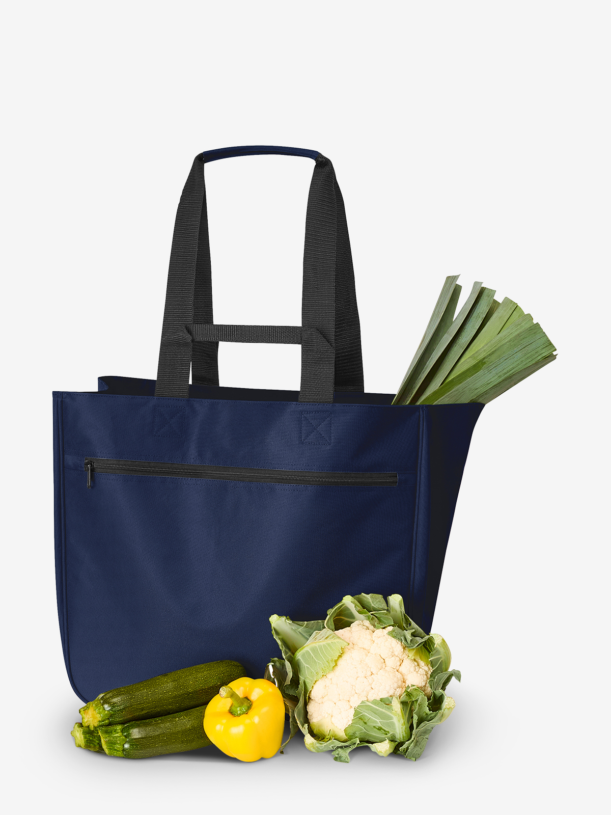 flexibler, geräumiger Shopper für viele Einsatzwecke; großes Hauptfach mit Bodenfüßen; Reißverschluss-Vortasche; Tragesystem mit Doppelgriffen und gepolsterte Griffmanschette für besten Tragekomfort