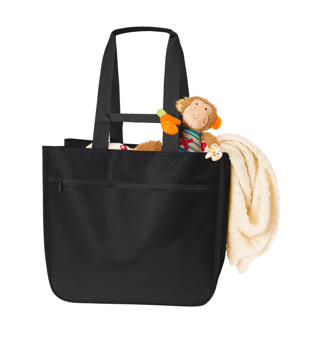 flexibler, geräumiger Shopper für viele Einsatzwecke; großes Hauptfach mit Bodenfüßen; Reißverschluss-Vortasche; Tragesystem mit Doppelgriffen und gepolsterte Griffmanschette für besten Tragekomfort