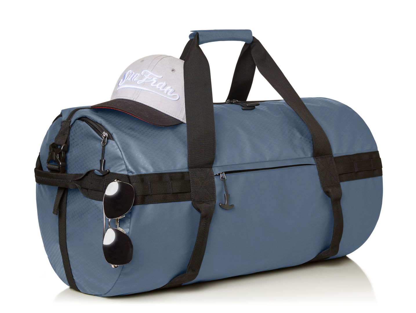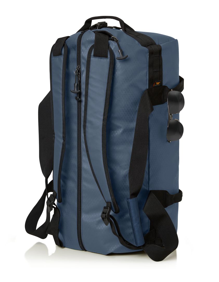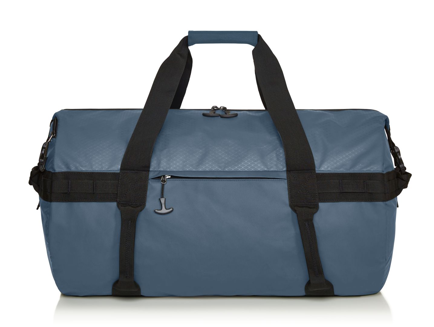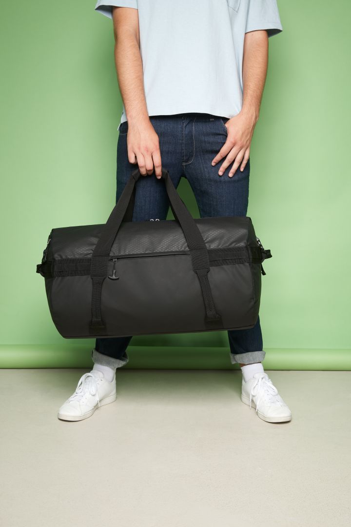 Brechen Sie mit der Sport-/Reisetasche ACTIVE in neue Designwelten auf. Es gibt viel zu entdecken an dieser zeitgemäßen und detailreichen Interpretation der Transportrolle… Da wäre die spannende Kombi aus Musterprägung und schlichtem PU-beschichtetem rPET-Material. Die Reißverschluss-Schieber in Ankerform und die Kreuzschnallen sind eigen, praktisch und schick. Aufgenähte Schlaufenbänder und clevere Ösen und Schnallen bieten allerlei Verstell-, Einstell- und Einhakmöglichkeiten. Zu fassen ist die Rolle von allen Seiten mit diversen Gurten und Griffen. Zu Fuß oder per Rad unterwegs? Dann lässt sich die Tasche auch als Rucksack nutzen, die Gurte sind clever integriert.