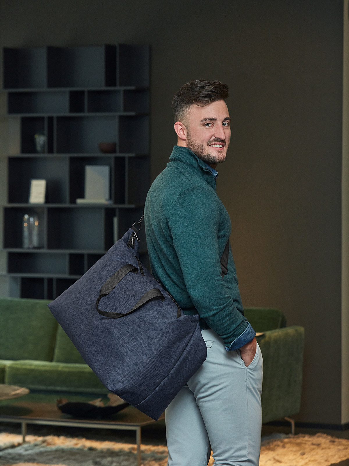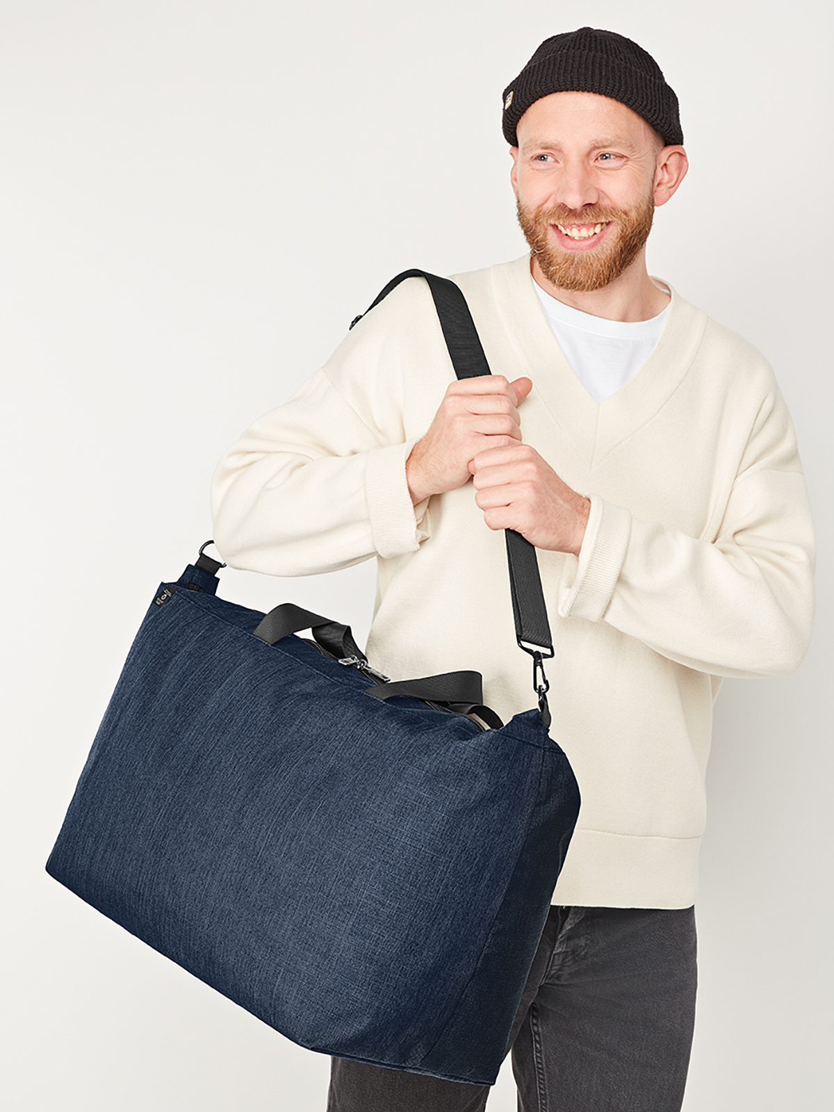geräumiges Hauptfach mit 2-Wege-Reißverschluss; fester Einlegeboden; rPET Obermaterial; wertige Metall-Accessoires; geräumige, hängende Reißverschluss-Innentasche; abnehmbarer, längenverstellbarer Schultergurt; Handgriffe