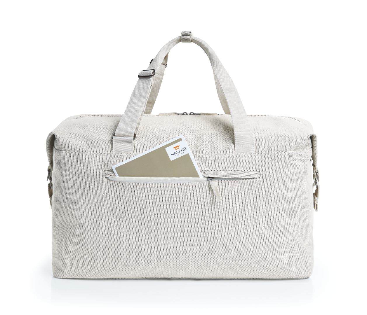In diese geräumige Tasche können Sie noch so viel einpacken – sie wird immer leicht und natürlich daherkommen. Dafür sorgt das wunderbare Material, ein weicher aber tragfester Baumwoll-Polyester-Mix. Der helle Sandton wirkt ausgesprochen frisch und pur. Auch die Gurte, Reißverschlüsse und das hängende Reißverschlusstäschchen innen sind in diesem Ton gehalten. A propos halten: Bei der Sport-/Reisetasche LOOM sind sogar die Handgriffe längenverstellbar. So können sie auch für das schnelle über-der -Schulter- oder sogar auf-dem-Rücken-Tragen eingestellt werden. Ein langer Schultergurt ergänzt das Ganze.
