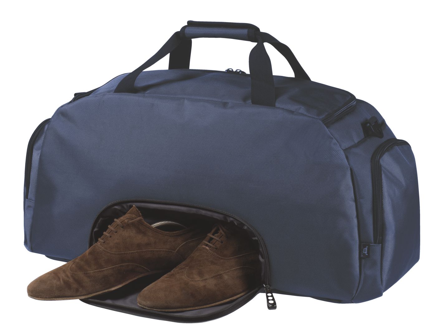 Wohin geht die Reise heute? Ins Meeting nach London, ins Wochenende nach Paris oder bloß ins Büro? Sicher ist: die elegante Sport-/Reisetasche MISSION verbreitet dank des edlen strukturierten Materials überall feinen Glanz. Und macht das Unterwegssein mit einer Vielzahl hilfreicher Details um einiges komfortabler. Hier nur einige davon: große Öffnung für einfaches Beladen, Hauptfach mit 2-Wege Reißverschluss, Tragegurt mit bequemem Schulterpolster, Handgriffe mit Griffmanschetten, BodenfüßeÂ… Eine Prämie, die zu allen passt, die stilvolle, hochwertige Werbeartikel schätzen.