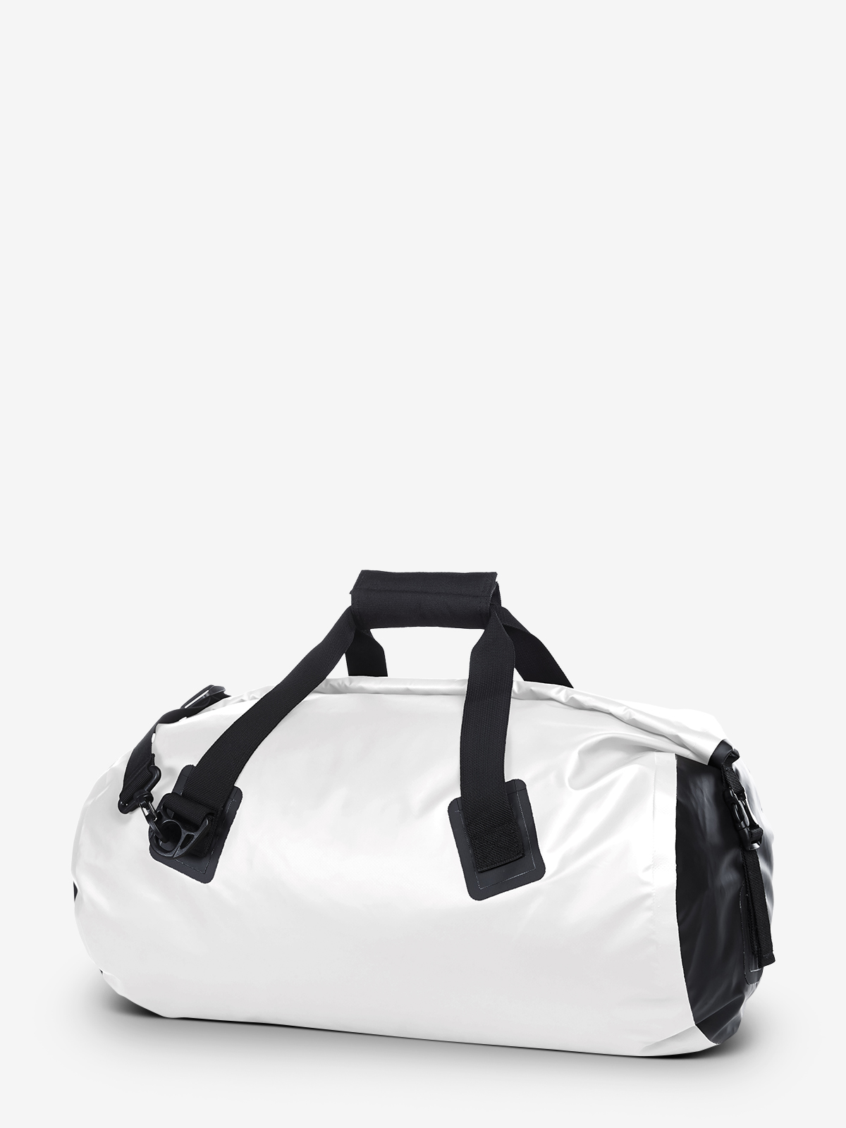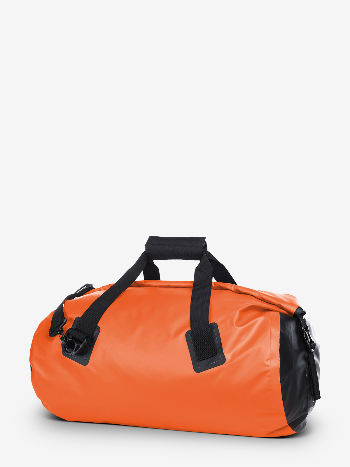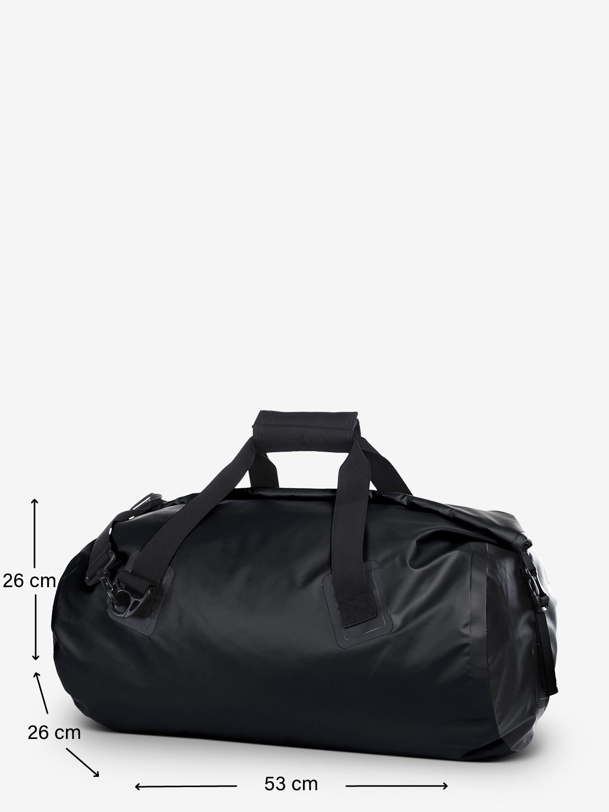 großes Hauptfach mit geschweißten Nähten und Rollverschluss schützt den Inhalt vor Wasser und Schmutz; seitliche Zurrgurte; Handgriffe mit gepolsterter Griffmanschette; abnehmbarer und längenverstellbarer Cross-Schultergurt für optimalen Tragekomfort
