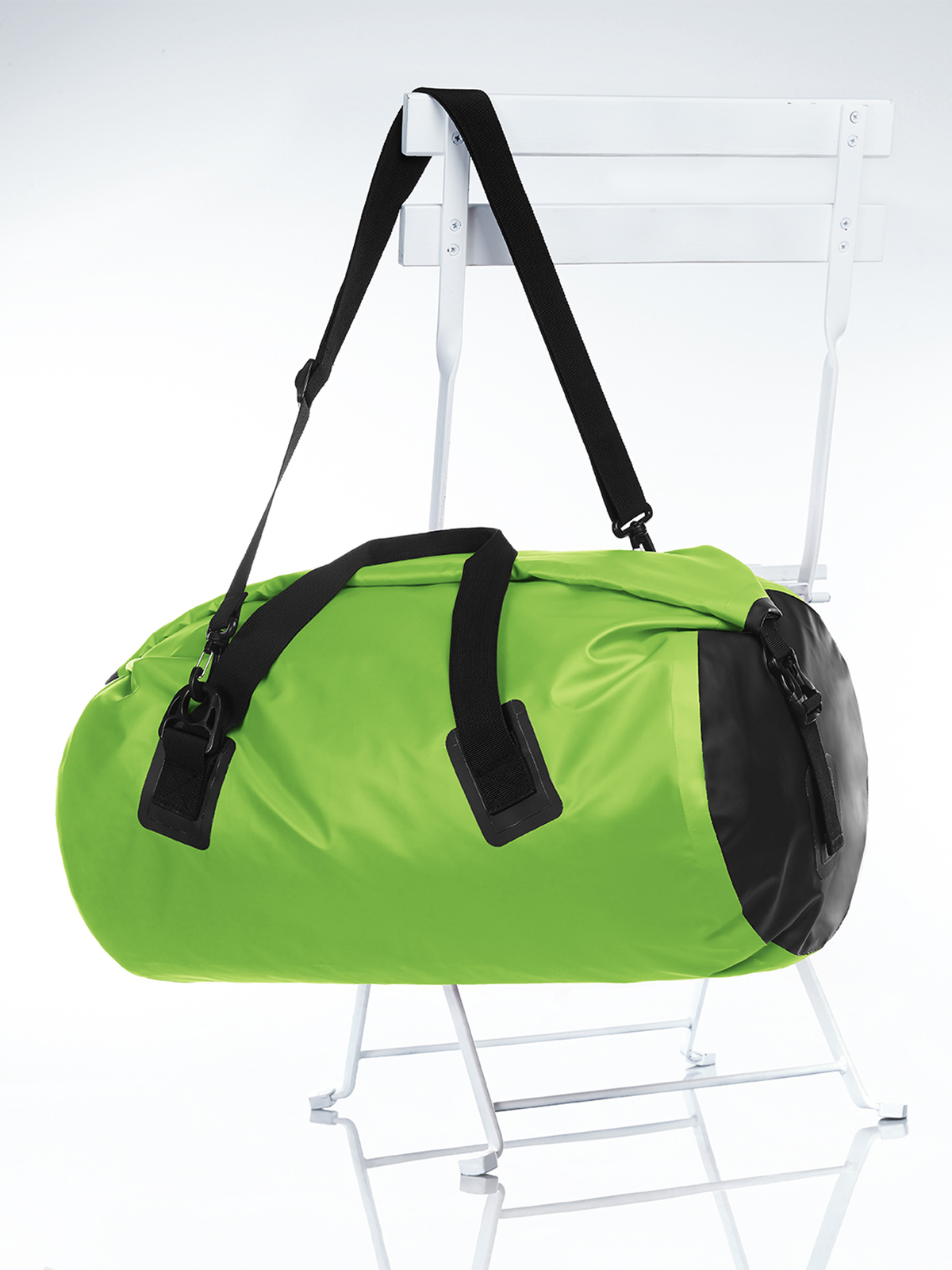 großes Hauptfach mit geschweißten Nähten und Rollverschluss schützt den Inhalt vor Wasser und Schmutz; seitliche Zurrgurte; Handgriffe mit gepolsterter Griffmanschette; abnehmbarer und längenverstellbarer Cross-Schultergurt für optimalen Tragekomfort