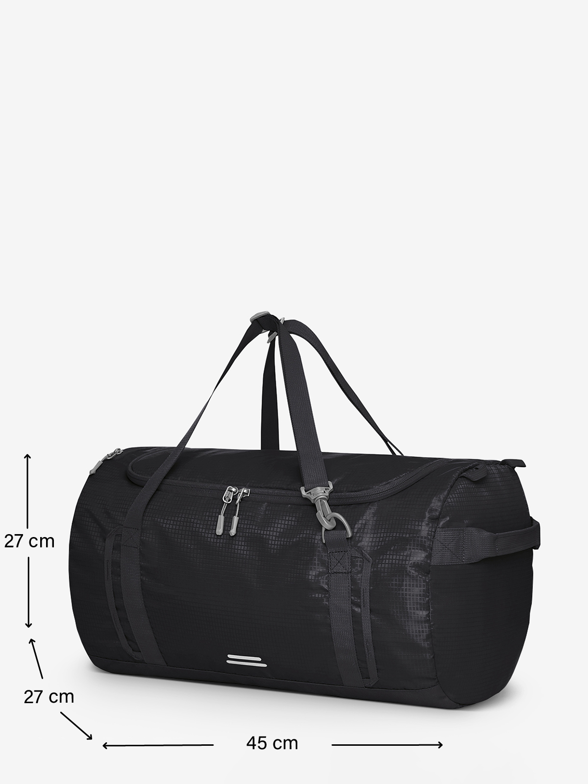 leichte, funktionelle Sporttasche mit Rucksackfunktion; geräumiges Hauptfach; große Öffnung mit 2-Wege-Reißverschluss; Reißverschlussfach im Deckel; hängendes sowie flaches Reißverschlussfach innen; seitliches Reißverschlussfach; funktionelles Schlaufen-Gurtband; Handgriffe beidseitig; längenverstellbare Tragegriffe auch als Rucksackträger nutzbar; dekorativer Reflexdruck