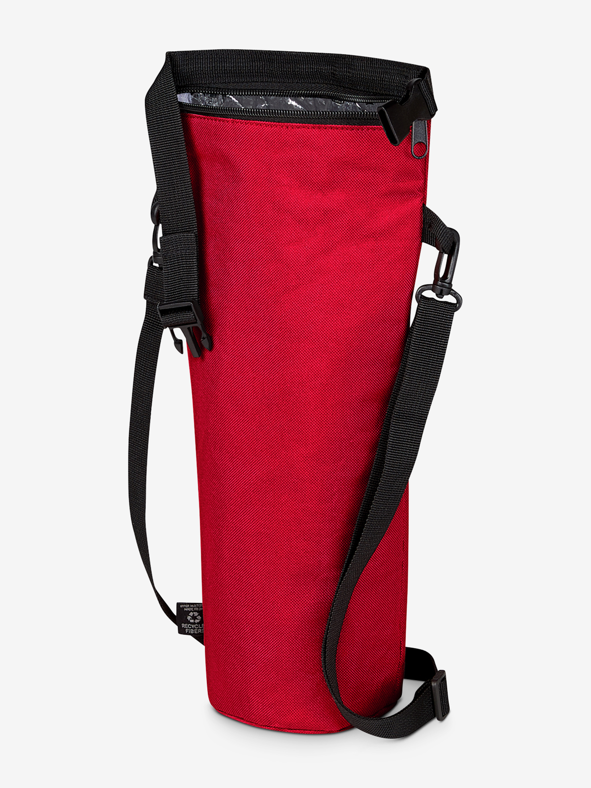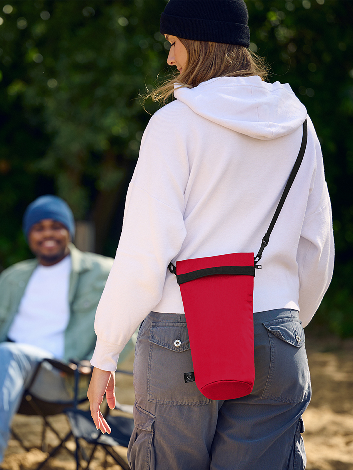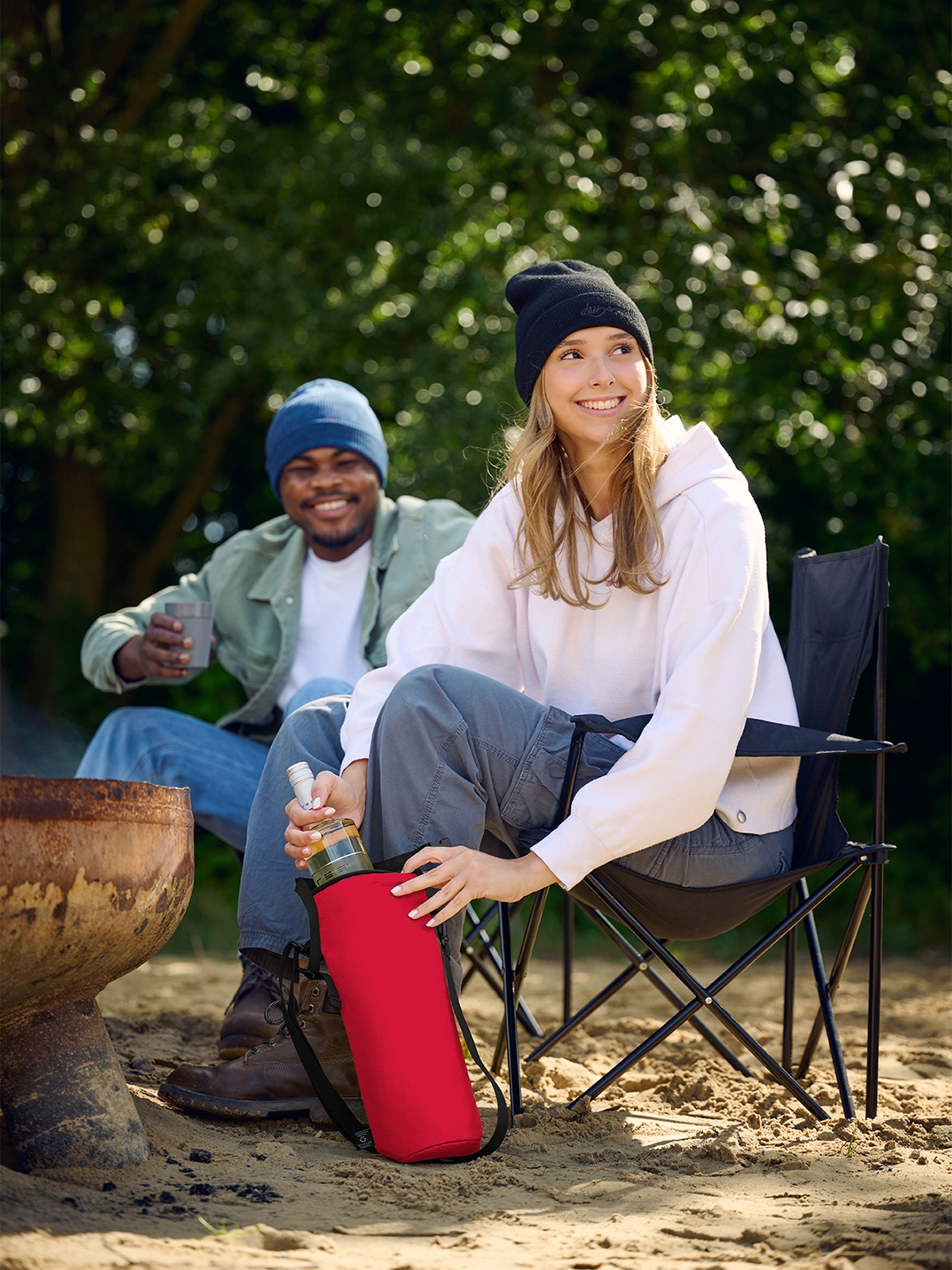 Sie ist das Mitbringsel schlechthin, Präsent Nummer eins und bei Outdoor-Aktivitäten immer dabei: die Flasche. Wenn Sie noblen Champagner überreichen, hausgemachten Holunderblütensirup verschenken oder einfach eine Flasche kühles Wasser dabeihaben wollen, legen wir Ihnen die Tasche BOTTLE ans Herz. Oder besser um die Schulter, denn sie ist mit einem praktischen Gurt ausgestattet. Ansonsten funktioniert die gepolsterte Thermo-Flaschentasche mit Recyclingobermaterial per Rolltop-Reißverschluss und Steckschloss. Dank bunter Farbauswahl passt sie sich stilsicher Situationen, Marken und Events an und könnte auf Stadtfesten, Festivals, beim Angeln, Campen oder der Ehrung auf dem nächsten Betriebsfest zu sehen sein. Übrigens: Auch bauchigere oder längere 1-Liter Sekt oder Weinflaschen passen locker hinein. Da können Sie dann auch gerne etwas höher ins Regal greifen, denn der Preis für die Verpackung mit der BOTTLE Thermobag ist erstaunlich niedrig.