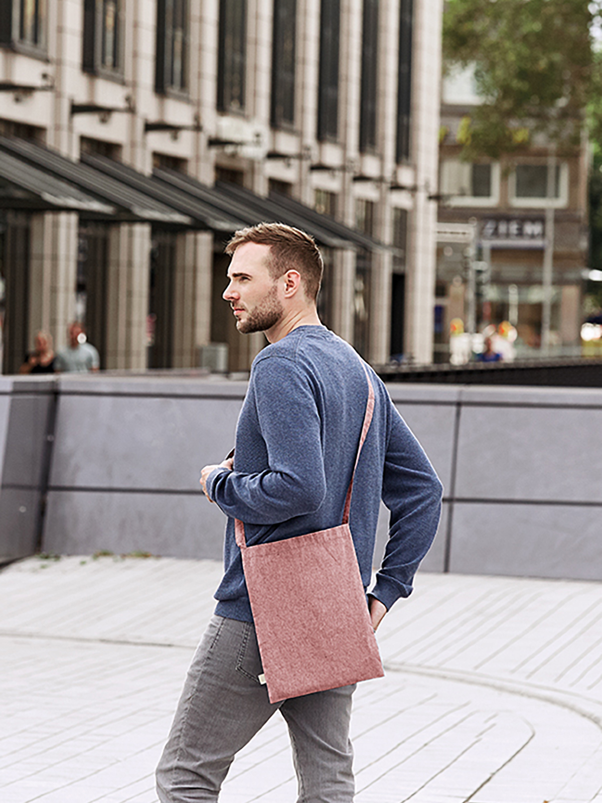 Nachhaltigkeit nehmen wir nicht auf die leichte Schulter: Gerade darum haben wir diese leichte Schultertasche mit dem extralangen Henkel gefertigt. Und zwar aus pre-recycelter Baumwolle, einem Material also, das aus Baumwollschnittresten gemacht ist. Das sieht und merkt man dieser praktischen Alltagshelferin nicht an, im Gegenteil. Die geradlinige Tragetasche hat Format und ist ideal für DIN A4-Unter-lagen geeignet. Kurzum: Eine wunderbare nachhaltige Messetasche oder einfach eine praktische Alltagsbegleiterin.