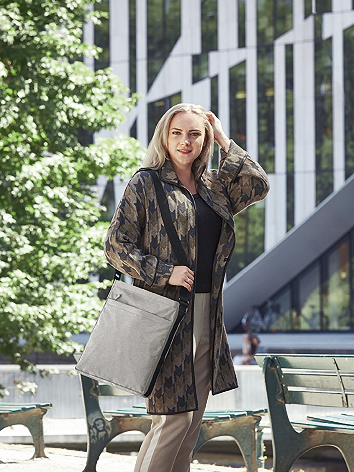 moderne Umhängetasche; rPET-Obermaterial; geräumiges Reißverschluss-Hauptfach; Vortasche mit verstecktem Reißverschluss; längenverstellbarer Tragegurt