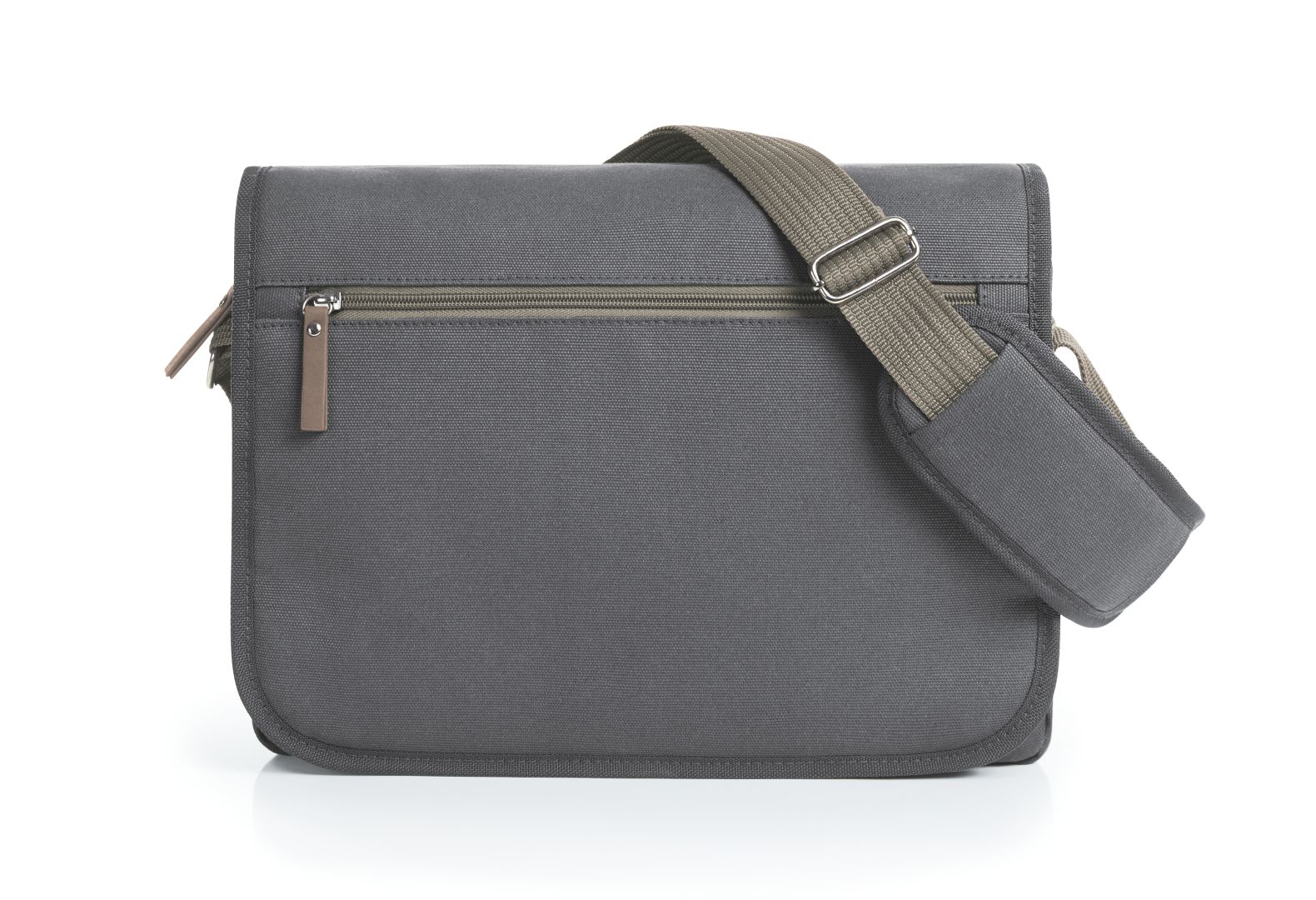 Die Umhängetasche mit dem großen Überschlag ist die hilfreiche Begleiterin zur Uni, ins Büro oder einfach in der Freizeit. A4-Unterlagen passen genauso gut hinein wie ein Tablet. Verschiedene, auch gepolsterte Fächer sorgen für die nötige Übersicht. Der Überschlag ist per Druckknopf geschlossen. Er lässt sich auch lässig mit einer Hand öffnen und gibt das Reißverschlusshauptfach und ein Einsteckfach frei. Lässigkeit ist ohnehin eines der Hauptmerkmale dieser Tasche, die mit griffigem Cotton in natürlichen Farben ganz unaufgeregt Charakter zeigt.