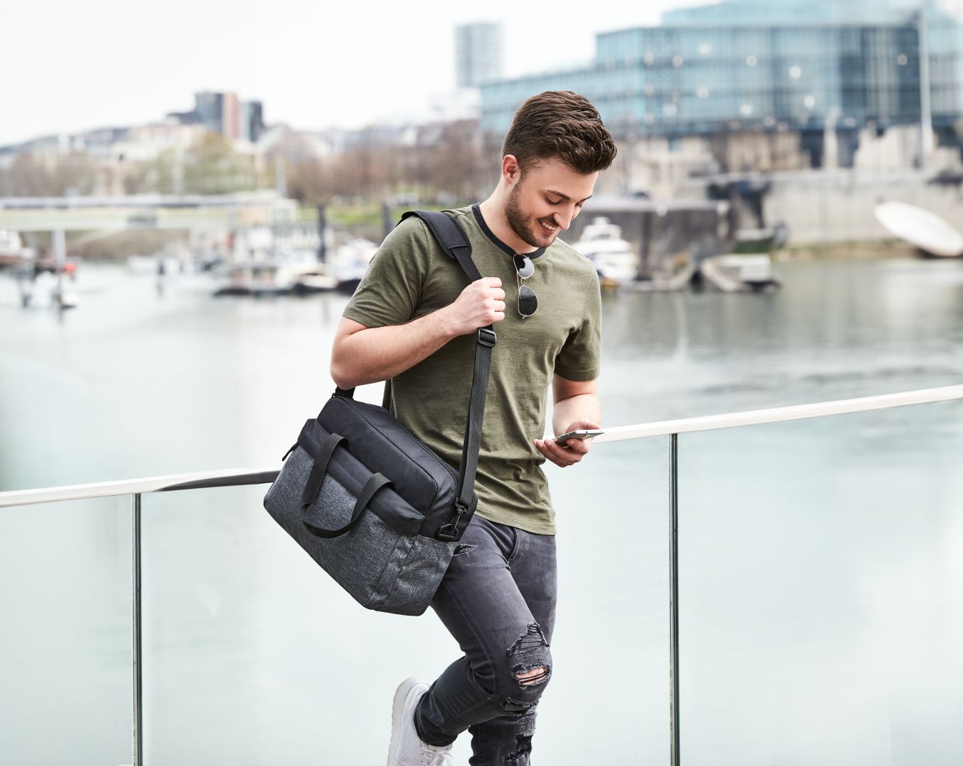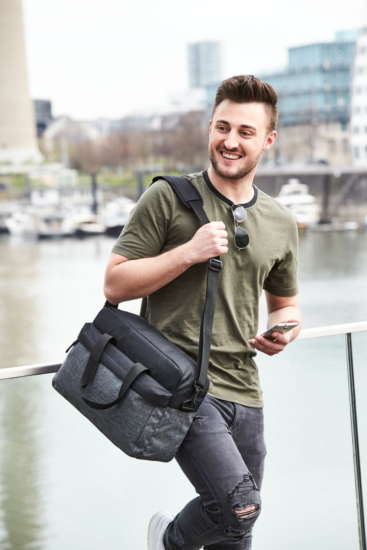 Ist das jetzt noch Freizeit oder schon Business – oder umgekehrt? Entscheiden Sie selbst, diese Tasche ist in jedem Fall zu allem bereit. Für einen Tag in der City. Spontan, lässig und wunderbar unaufgeregt. Oder für den Alltag im Büro. Kompakt, gut organisiert und erfrischend designt. Denn die Umhängetasche bietet Platz für zwei große A4-Aktenordner und macht mit seitlich umlaufendem Reißverschluss das Packen einfach. Und dank angenehmen Polsterungen und Befestigungsschlaufe für den Trolley fällt auch das Tragen sprichwörtlich leichter.