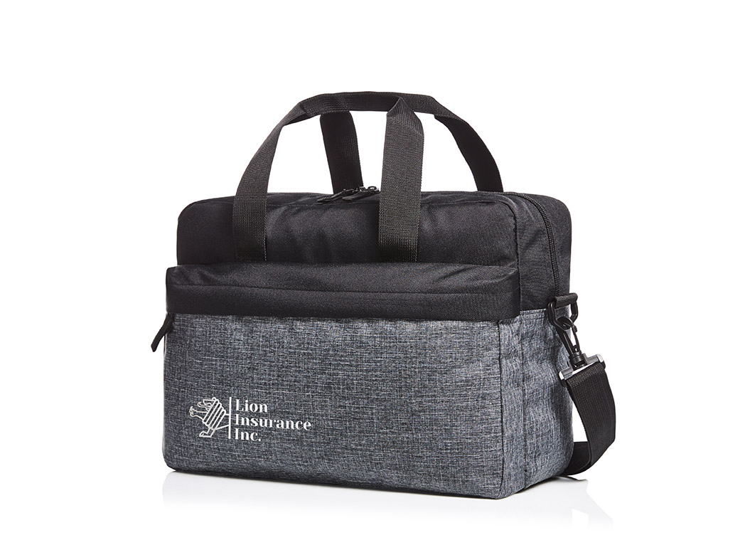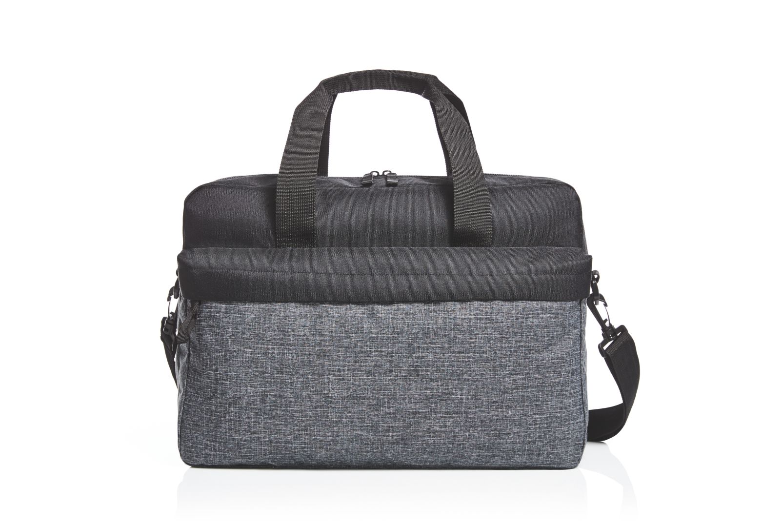 geräumige, zweifarbige Umhängetasche; großes Hauptfach ausreichend groß für 2 große DIN A4-Aktenordner; seitlich umlaufender 2-Wege-Reißverschluss zum idealen Befüllen; gepolsterte Vorder- und Rückseite; fester Einlegeboden; Reißverschluss-Innentasche; Reißverschluss-Vortasche mit Organizer-Elementen; rückseitiges flaches Einsteckfach; Befestigungsschlaufe für Trolley-Gestänge; abnehmbarer, längenverstellbarer Schultergurt mit Schulterpolster; Handgriffe