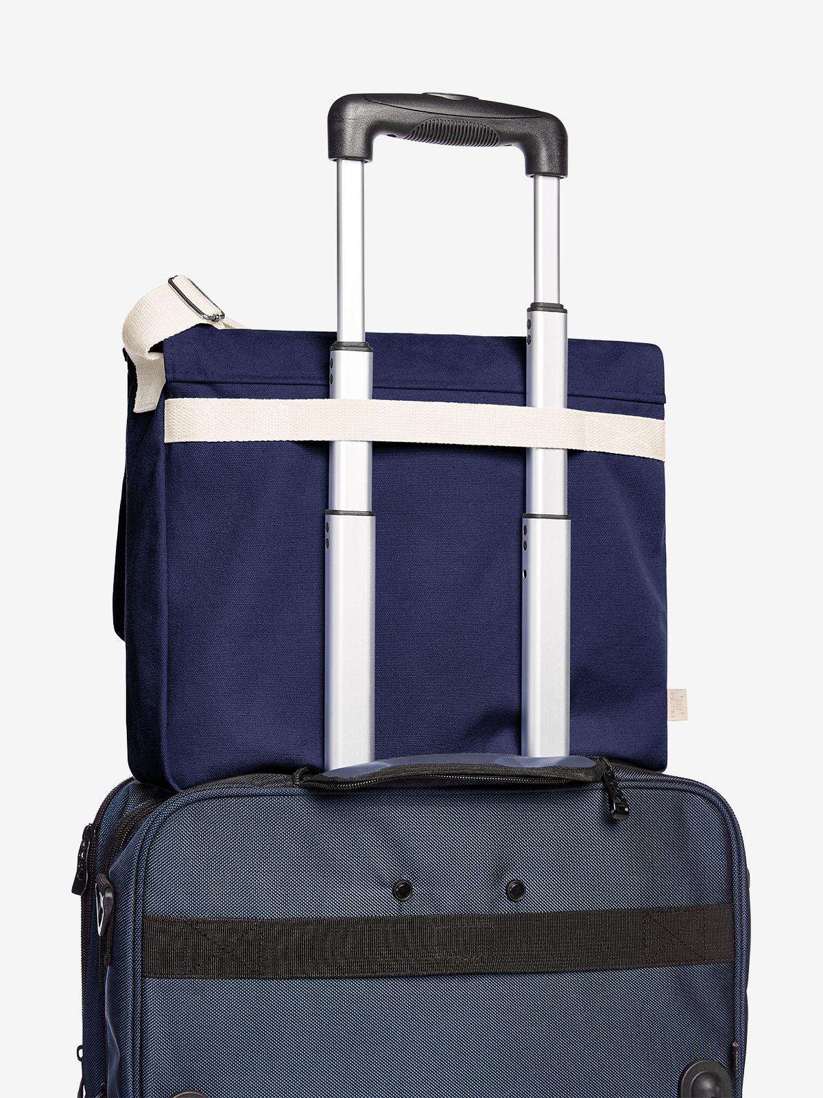 Überschlagtasche mit wertigen Metall-Accessoires; Bügelverschluss; großes Hauptfach u.a. geeignet für A4 Unterlagen; zwei flache Einsteckfächer auf der Front; rückseitige Befestigungsschlaufe für Trolley-Gestänge - alternativ auch als Handgriff nutzbar; breiter, längenverstellbarer Baumwoll-Schultergurt