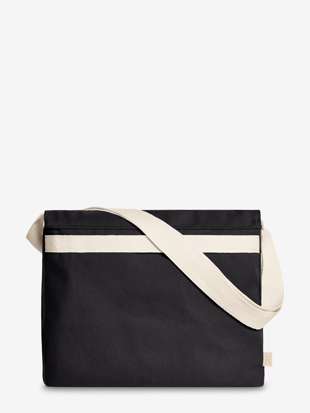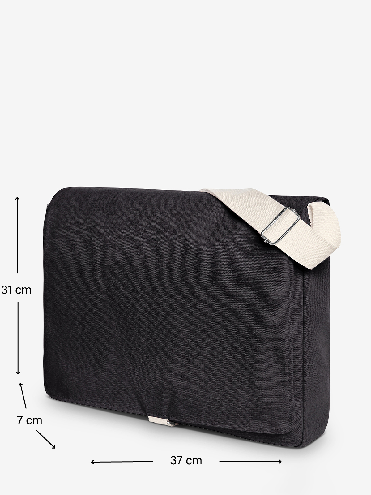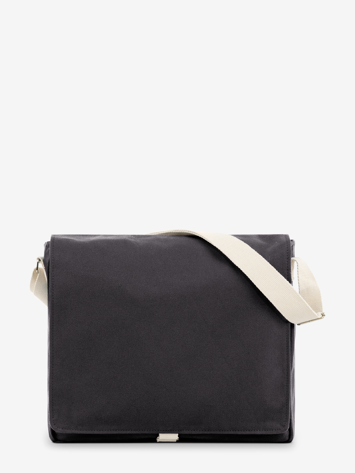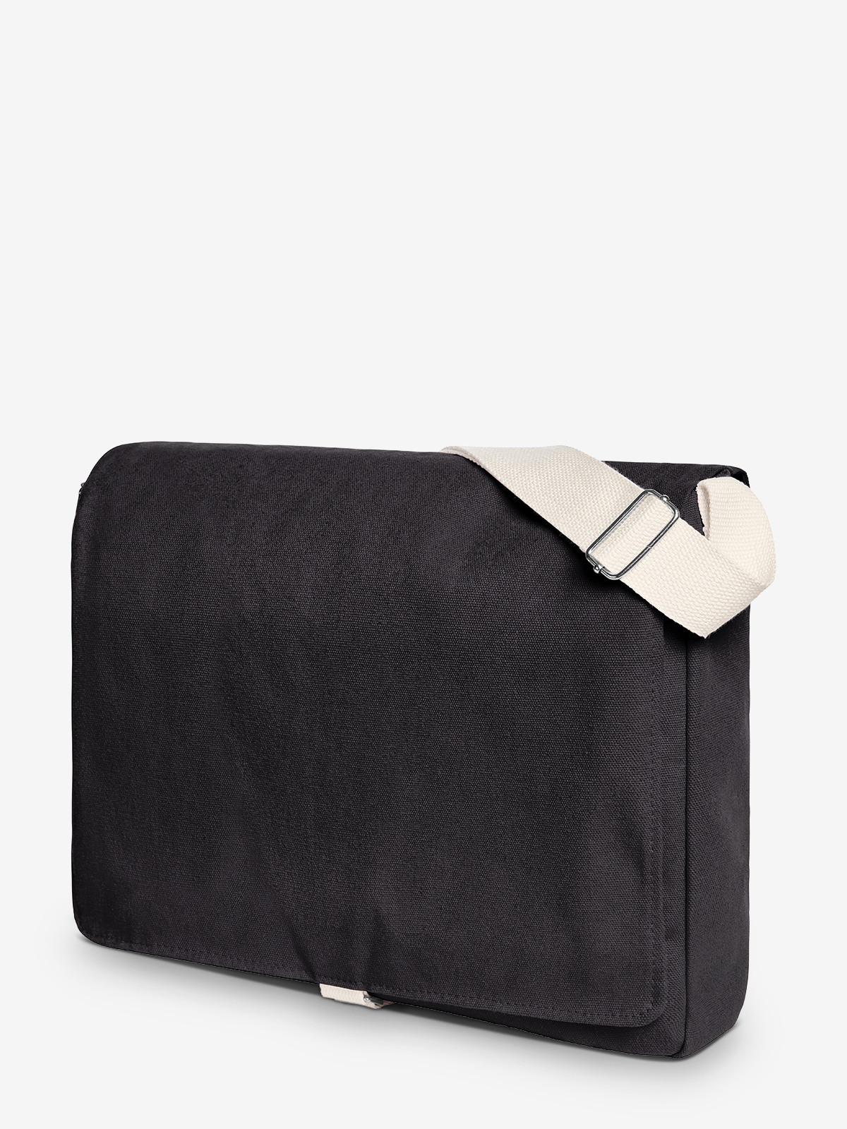 Überschlagtasche mit wertigen Metall-Accessoires; Bügelverschluss; großes Hauptfach u.a. geeignet für A4 Unterlagen; zwei flache Einsteckfächer auf der Front; rückseitige Befestigungsschlaufe für Trolley-Gestänge - alternativ auch als Handgriff nutzbar; breiter, längenverstellbarer Baumwoll-Schultergurt