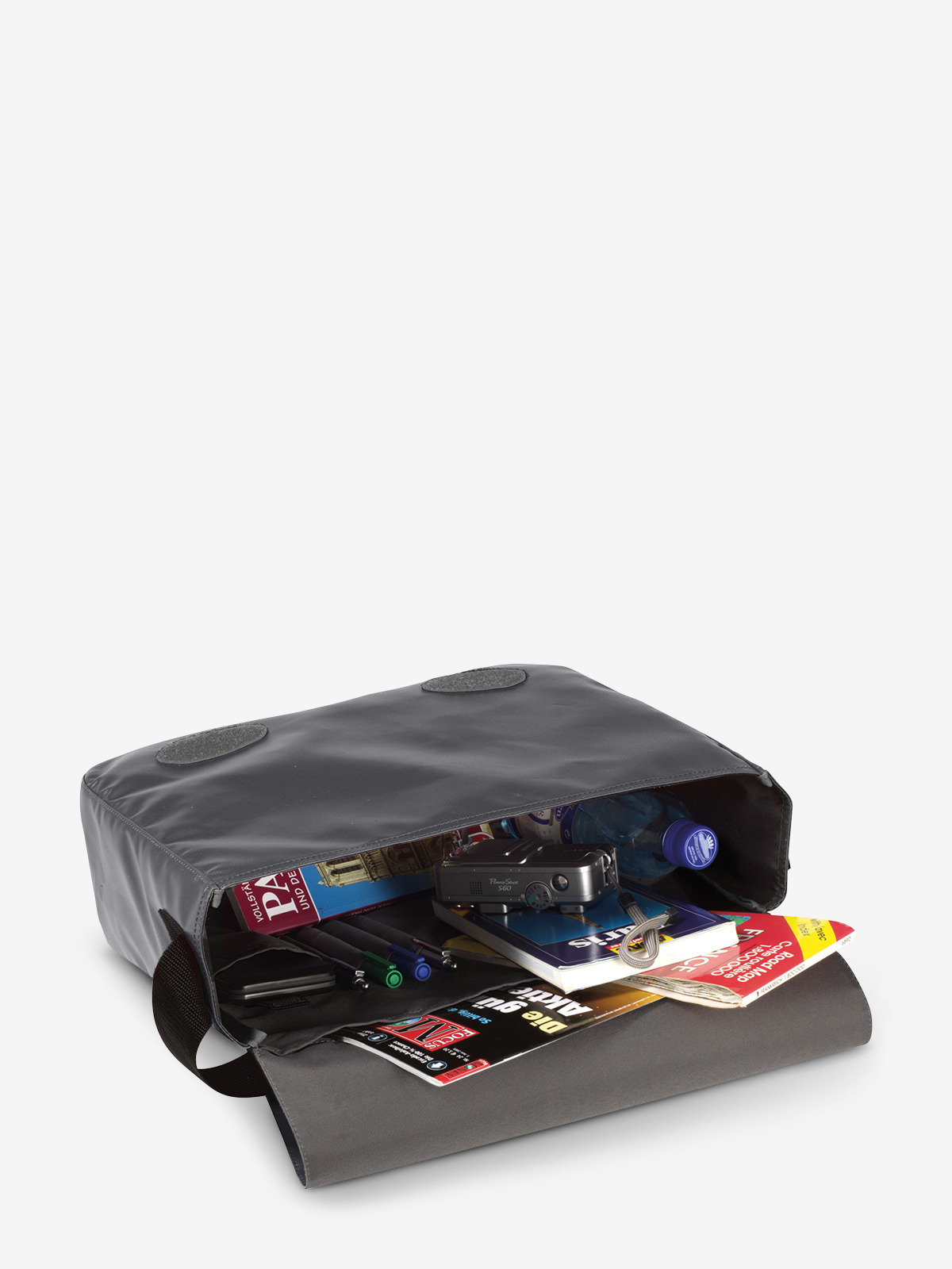 attraktives Design mit kontrastfarbenem Innenfutter; Hauptfach mit Organizer-Elementen; flaches Einsteckfach innen; bequemer Schultergurt; großer Überschlag mit Klettverschluss als ideale Druckfläche für Ihre Promotion