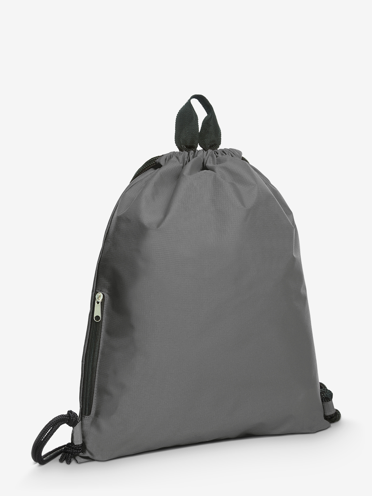 großer Zugbeutel-Rucksack; Hauptfach mit seitlicher Reißverschluss-Tasche; Kordelzug; Trageschlaufe