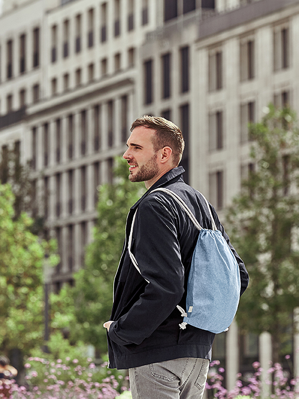 Eigentlich sieht man es nur am eingenähten Label: Dieser Zugbeutel ist ein Recyclingprodukt. Sein Korpus wurde aus pre-recycelter Baumwolle hergestellt. Konkret heißt das: aus aufbereiteten Schnittresten aus der Taschenproduktion. Geben Sie diesem zweiten Leben also einen ganz eigenen Sinn: Veredeln Sie den Zugbeutel mit Ihrem Logo und geben Sie ihn als Werbetasche oder Prämie in den Kreislauf zurück. Als ein echtes Universaltalent macht er so nachhaltig Freude!