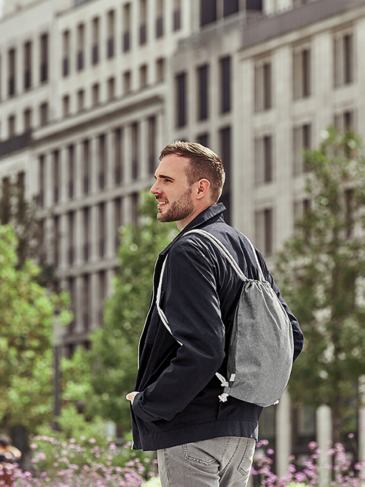 Eigentlich sieht man es nur am eingenähten Label: Dieser Zugbeutel ist ein Recyclingprodukt. Sein Korpus wurde aus pre-recycelter Baumwolle hergestellt. Konkret heißt das: aus aufbereiteten Schnittresten aus der Taschenproduktion. Geben Sie diesem zweiten Leben also einen ganz eigenen Sinn: Veredeln Sie den Zugbeutel mit Ihrem Logo und geben Sie ihn als Werbetasche oder Prämie in den Kreislauf zurück. Als ein echtes Universaltalent macht er so nachhaltig Freude!
