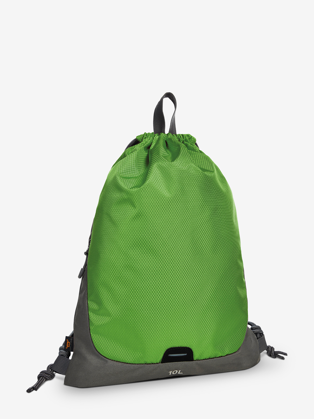 großer Zugbeutel-Rucksack; Hauptfach mit seitlicher Reißverschluss-Tasche; Reflektor-Streifen; Kordelzug; Trageschlaufe