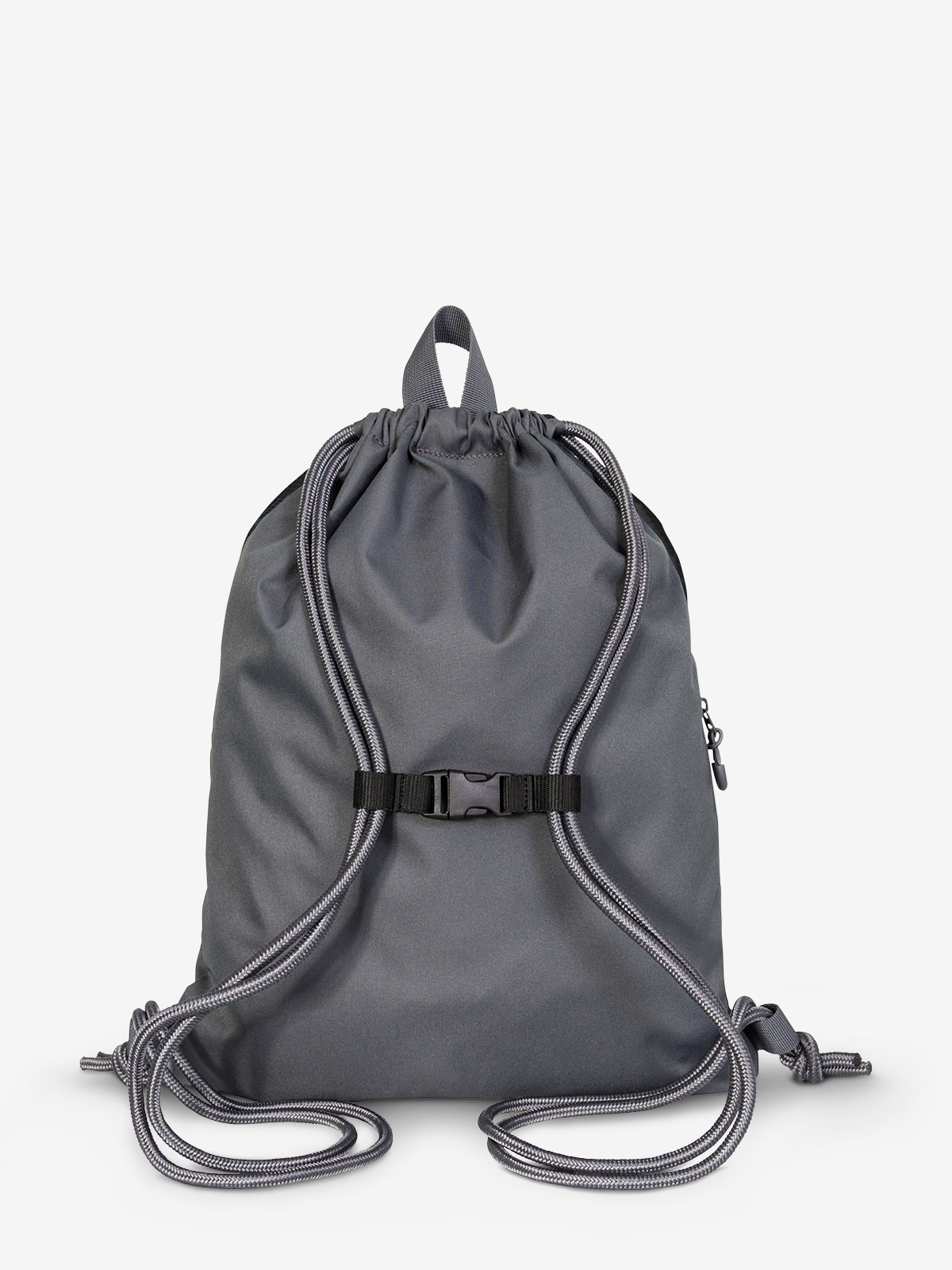 großer Zugbeutel-Rucksack; Hauptfach mit seitlicher Reißverschluss-Tasche; Reflektor-Streifen; Kordelzug; Trageschlaufe